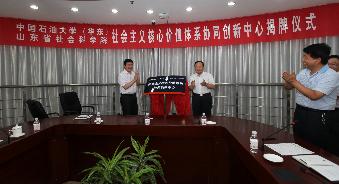7月21日上午,yl23455永利集团和山东省社会科学院联合组建的“社会主义核心价值体系协同创新中心”举行揭牌仪式,我校副校长李兆敏教授与山东省社科院党委书记唐洲雁教授共同为中心揭牌。仪式由永利y23455司江伟教授主持,学院部分教师和学生代表参加会议。