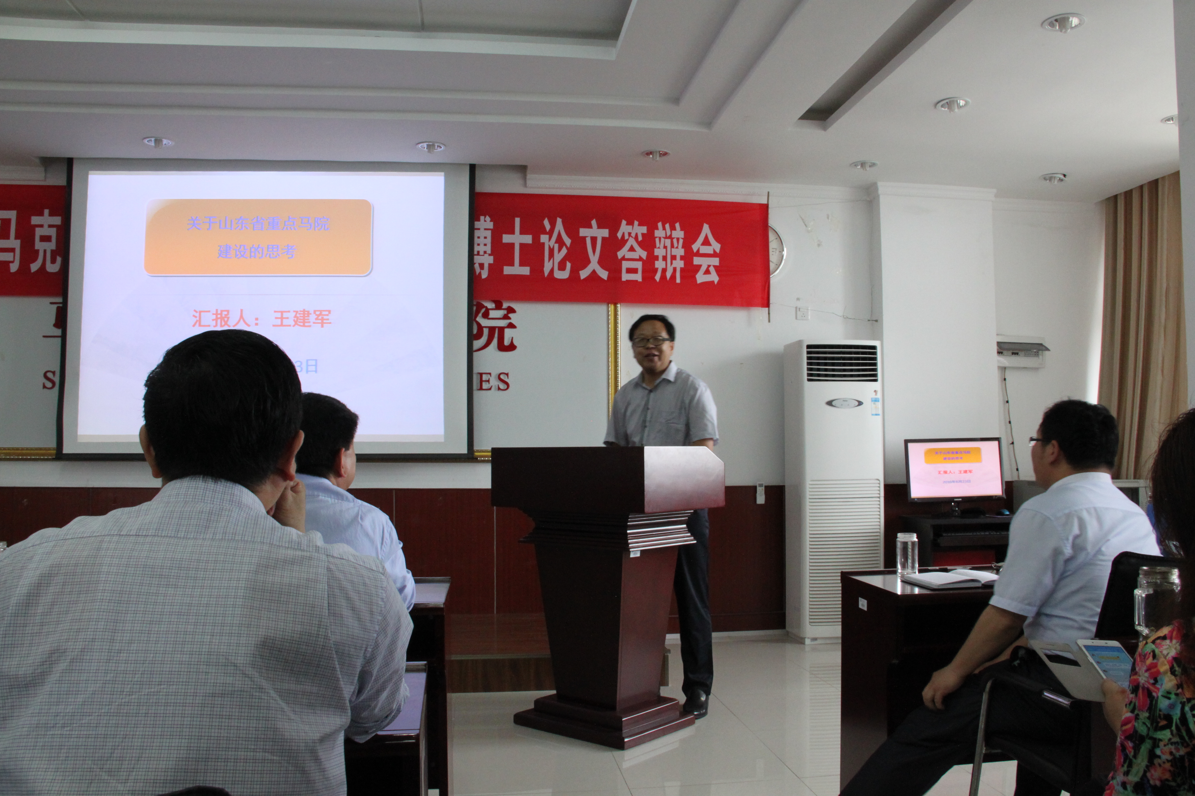 司江伟书记结合学习习近平总书记系列重要讲话的体会,从总书记系列重要讲话的主要内容、总书记系列重要讲话的鲜明特点、总书记系列重要讲话的科学思维三方面做了题为《中华民族伟大复兴的理论指导和行动指南》的报告。王建军院长结合学院实际工作,从新平台,新起点、基本思路与工作中心、思政课教学、科研学科、队伍建设、社会服务六方面,讲述了关于山东省重点马院建设的思考,希望全体党员在建设山东省重点永利y23455的实践中做合格党员。