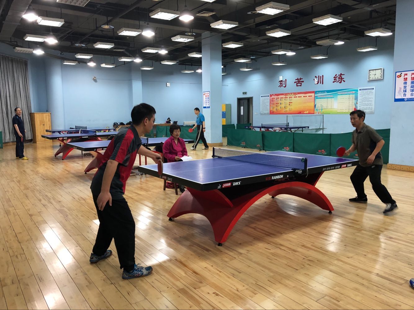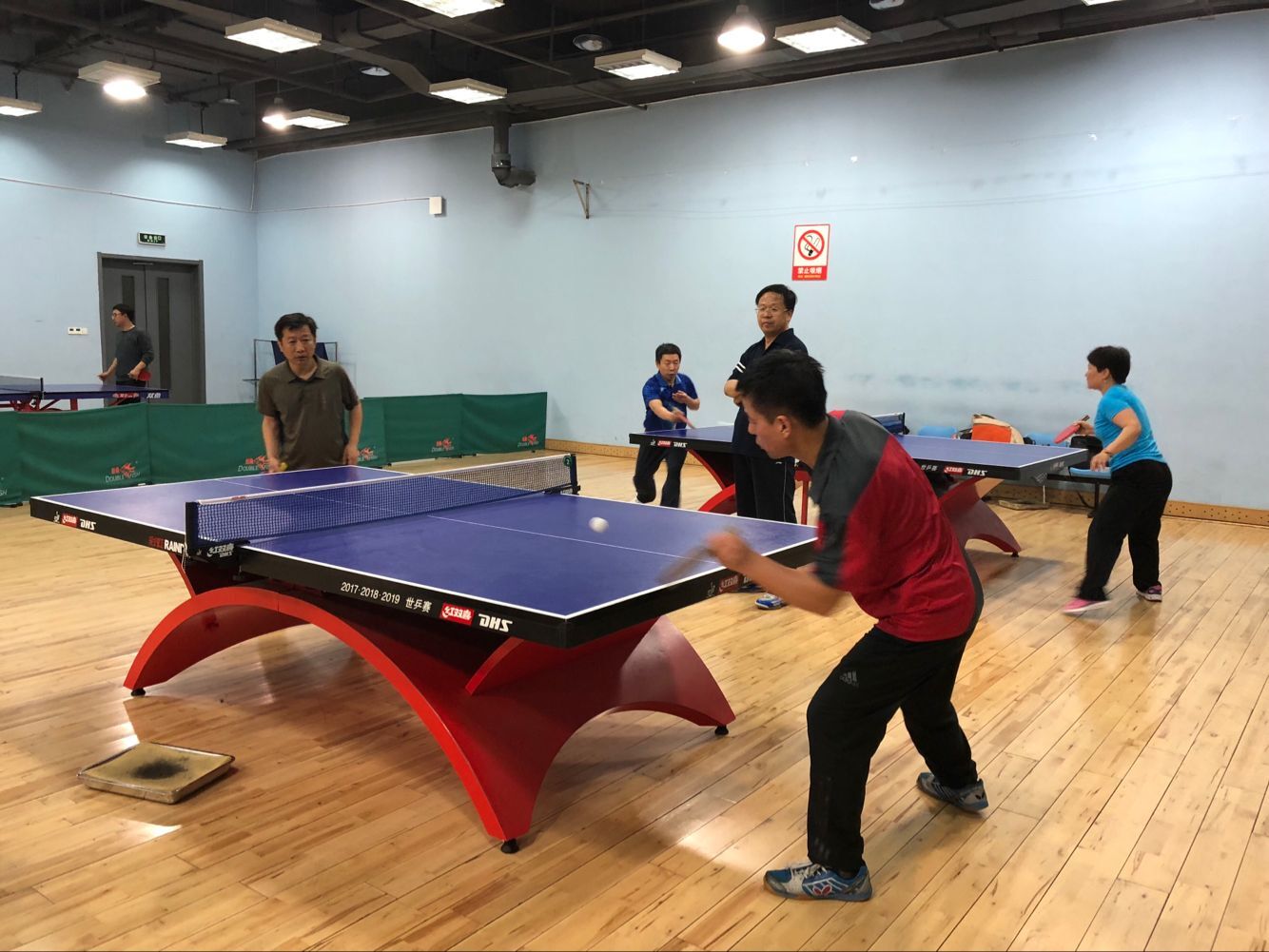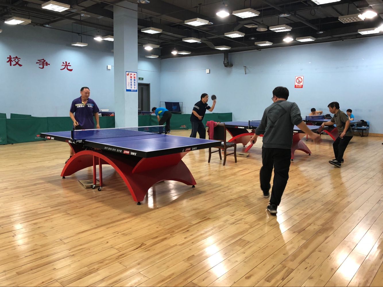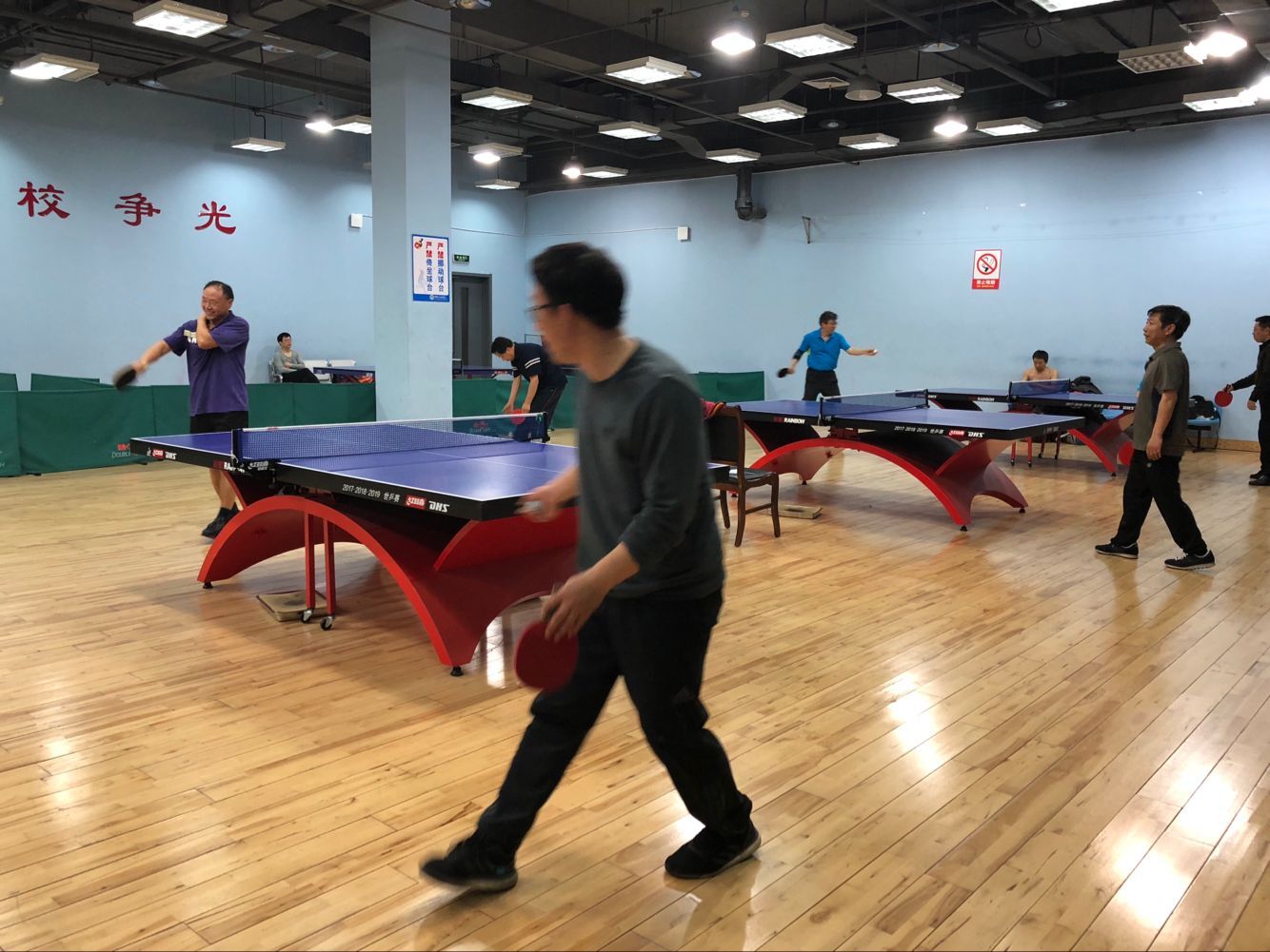 2018年5月11日下午,永利y23455工会组织学院全体教师在学校体育馆乒乓球室举行了马院乒乓球男子排位赛。比赛采取大循环,三局两胜制。我院王建军、霍洪波、于志亭、刘长欣、叶立国等老师在比赛场上十分活跃。经过激烈的角逐,最终叶立国老师获得男子单打一哥称号。