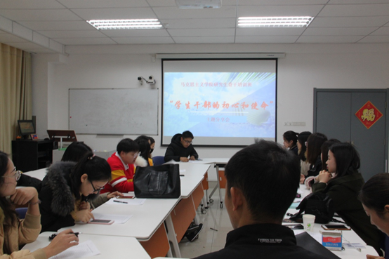 为加强我院学生干部队伍建设,打造一支高效、优质的学生干部队伍,提高学生干部自身素质,12月24日上午,我院2018年研究生骨干培训班在文理楼445组织“学生干部的初心和使命”主题交流会。通过校、院两级方式、三个阶段的学习和培训,学员们表示感触颇深、获益匪浅,在交流会中结合主题分享了自己的感悟和收获。学员们纷纷表示,作为学生干部,要深刻领悟习近平总书记在十九大报告中说的“中国共产党的初心和使命就是为中国人民谋幸福,为中华民族谋复兴”。培训班学员刘雨晴认为,作为一名新时代的学生干部,初心和使命就是为同学服务、为班级争光、为学院奉献,就是顾大局、识大体,努力成长为一名德才兼备的新时代研究生骨干。