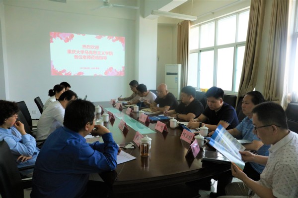 岳金霞副院长首先代表学院对重大马院同仁的来访表示欢迎并介绍了学校和学院的基本情况。张瑞涛副院长介绍了我院学科建设与硕博研究生培养经验。原理教研室主任刘继高就原理课堂对分教学、大班授课小班研讨等创新模式与来访教师进行了深入交流。重大马院原理系主任代表重大马院考察团对我院致谢,团委书记杨华介绍了重大马院发展历程、学科建设及原理系教学与科研等情况。