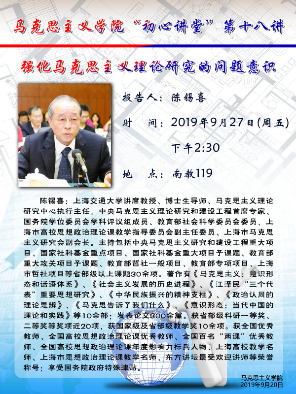 初心讲堂第18讲——关于陈锡喜教授学术报告的通知