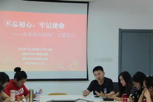 根据《永利y23455“不忘初心、牢记使命”主题教育工作方案》的相关要求,9月28日上午,我院博士生党支部、2018级研究生党支部、2019级研究生党支部等3个学生党支部的全体成员齐聚文理楼445会议室,联合开展了“我和我的祖国”主题党日活动,活动由博士生党支部书记邵鹏主持。