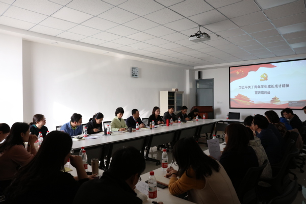 10月30日上午,我院张荣华教授为学校辅导员理论宣讲团全体成员作了“习近平关于青年学生成长成才精神”的宣讲培训,校党委学生工作部(处)副部长孙鹏燕、我院党委副书记袁爱军及相关院部的党委副书记、辅导员一同参加了培训会。