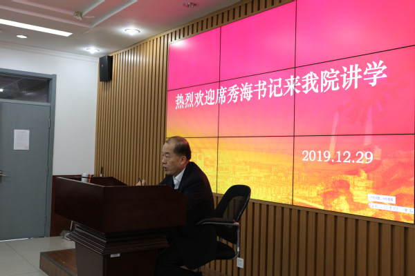 12月29日上午,我院邀请校友席秀海书记来学院为研究生讲学,学院院长王建军老师、副院长张瑞涛老师、党委副书记袁爱军老师以及张荣华教授出席会议。席秀海书记2002年毕业于我院的思想政治教育专业,曾在齐鲁石化公司和胜利石油管理局任党委书记,曾获“全国五一劳动奖章”称号,是我校的校友之星。