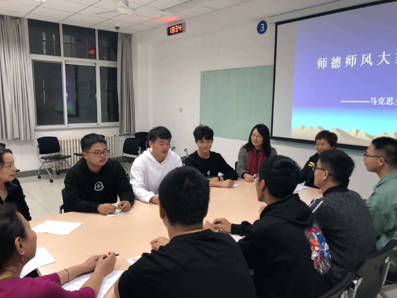 2020年10月23号,永利y23455召开师风师德建设师生座谈会。马院老师与部分学生代表就师风师德建设中的一些问题进行了深入的交流,大家一致认为,开展师德师风建设对融洽师生关系、强化教师职业素养、进一步提升yl23455永利集团教学质量和办学水平有积极作用。