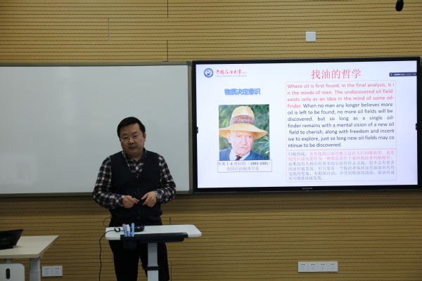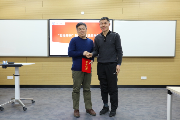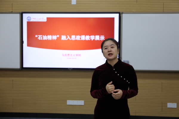 辞旧迎新之际,我院于南堂411教室隆重举行“石油精神融入思政课教学展示”活动。国家一级作家、《石油精神》主编周洪成先生作为特邀嘉宾线上参与本次活动。国家一流课程《中外石油文化》主持人、石油工程学院张卫东教授,党委教师工作部、教师教学发展中心副主任张庆荣,以及学院院长王建军、党委书记司江伟、教学督导员江华、陈龙娟、孙伟老师担任评委。本次活动由岳金霞副院长主持,部分石油、石化高校教师在线观摩。
