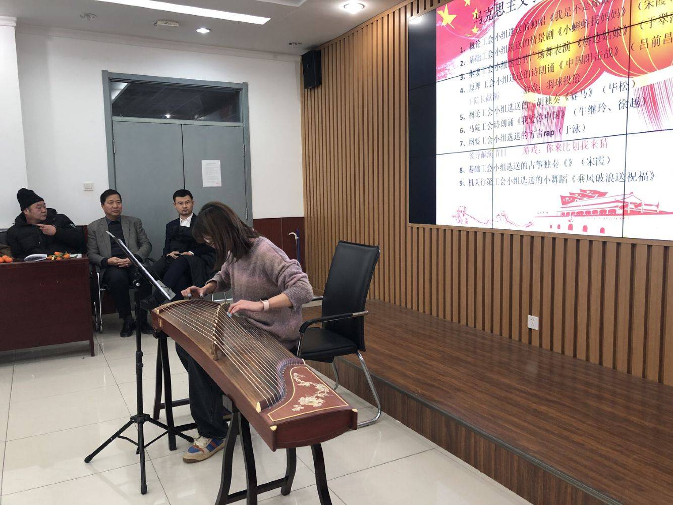“玉鼠回宫传捷报,金牛奋蹄涌春潮!”2021年1月8号下午,永利y23455工会举行2021年迎新联欢会。马院的老师们各显神通,节目丰富多彩,形式多样,既有歌舞表演,又有人人可以参与的游戏节目。联欢会主题鲜明,歌颂中华民族的爱国主义精神,歌颂我们团结一心阻击疫情的抗疫精神,彰显马院红色文化内涵。