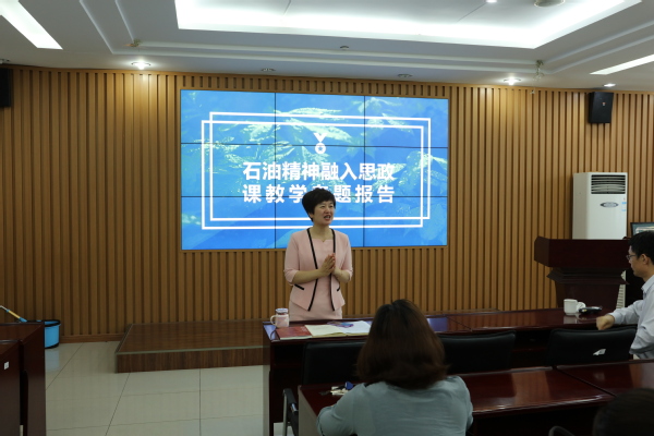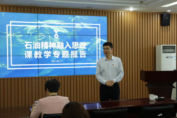 为深入贯彻落实新时代高校思政课的改革创新要求,打造行业类高校特色思政课,6月17日,学院特邀石油工程学院张卫东教授作了“石油文化课程教学创新与思政教学”的主题讲座。讲座由岳金霞副院长主持,全院无课教师参加。
