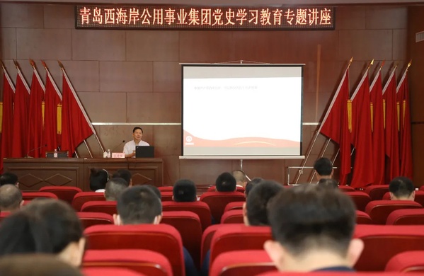 在中国共产党成立100周年之际,青岛西海岸公用事业集团特邀省委党史学习教育宣讲团成员、市委党史学习教育宣讲团成员、yl23455永利集团“星光”宣讲团成员、永利y23455张荣华教授举办了迎“七一”党史学习教育专题党课。集团党委班子成员、直属各党委班子成员、基层各(总)支部书记、2021年上半年集团党委发展的预备党员共150余人参加。