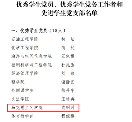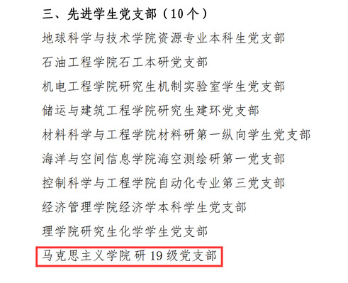 在隆重庆祝中国共产党成立100周年、全面开展党史学习教育之际,为进一步加强学生党建和思想政治教育工作,表彰先进,树立典型,校党委本着公开、公平、公正的总体原则,在全校范围内评选表彰优秀学生党员、优秀学生党务工作者和先进学生党支部,永利y23455研19级党支部获先进学生党支部表彰,19级硕士生袁明月获优秀学生党员表彰。