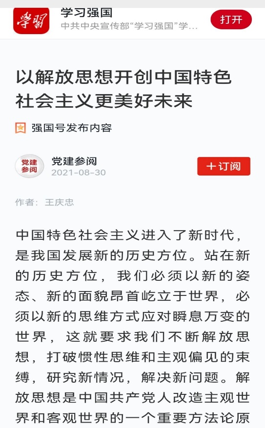 近日,王庆忠副教授发表在《党建参阅》(2021年第12期)的文章《以解放思想开创中国特色社会主义更美好未来》被“学习强国”转载刊登。文章认为,解放思想是马克思主义的内在要求。马克思主义特别强调要根据不断变化的阶级斗争形势丰富发展自身的理论体系,因此要特别注重意识的能动作用,摆脱陈腐的偏见与思想的束缚,客观、平等地看待事物。解放思想是马克思主义中国化理论成果的内在要求。在马克思主义与中国革命、建设和改革相结合的过程中,形成了毛泽东思想、邓小平理论、“三个代表”重要思想、科学发展观、习近平新时代中国特色社会主义思想等理论体系,而解放思想在这些理论形成的过程中发挥了重要的作用。解放思想是推进新时代中国特色社会主义事业的内在要求。在新时代中国特色社会主义事业的建设过程中,我们不断解放思想,冲破思想观念的障碍、突破利益固化的藩篱,用创新思维、辨证思维解决了改革路上出现的各种困难和问题,不断把中国特色社会主义事业推向前进。