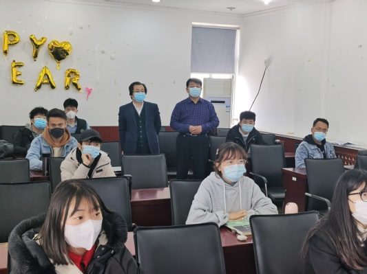 (党委副书记、副院长袁爱军、辅导员王会老师进入学生课堂慰问同学们)