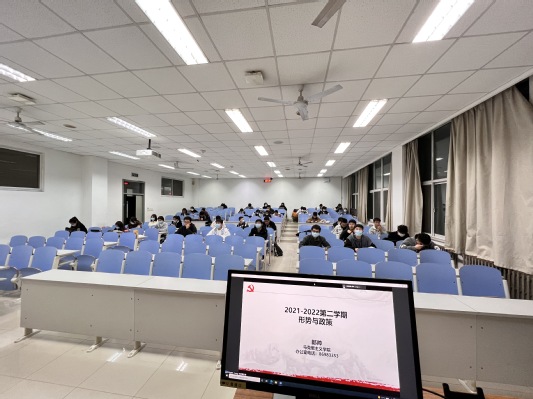 (线下课堂有序进行,图为郎帅老师在上形势与政策课)