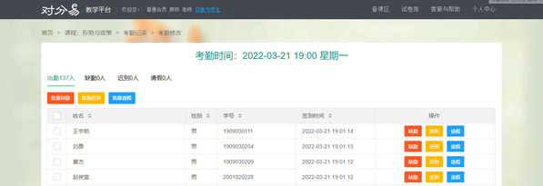 形策课与其他课程相比,按轮授课,学生不固定,课堂具有流动性。线上教学任务下达后,形策课各位老师一起找方案、做预案,与各班班长、团支部书记和学习委员共同组建“教学共同体”,利用线上平台第一时间与同学们建立了联系,确保将课程信息和授课方式通知到每一位同学,有效进行课堂管控,将疫情防控落到实处,使课堂教学平稳运行。