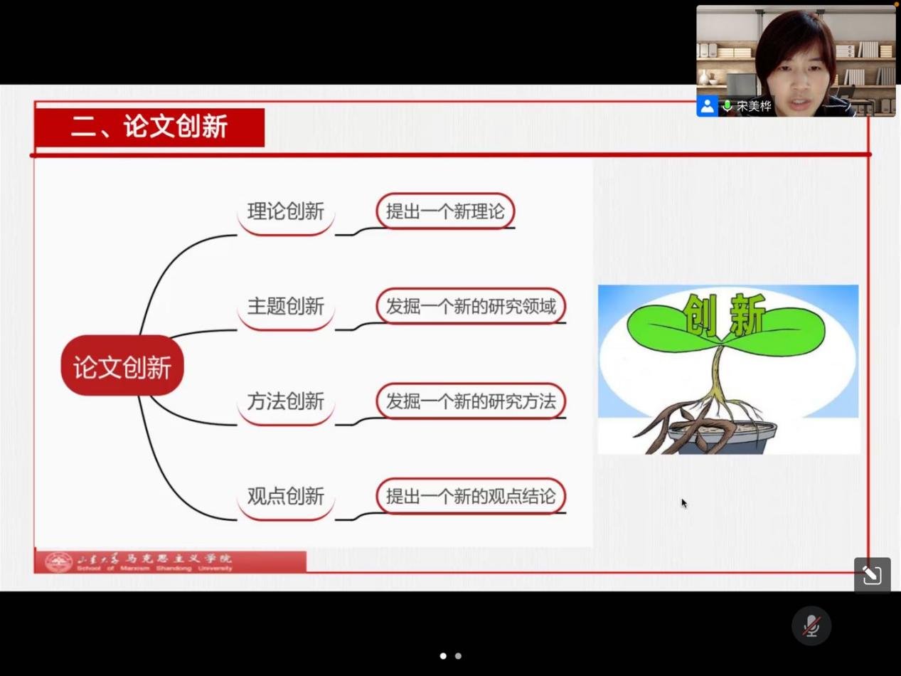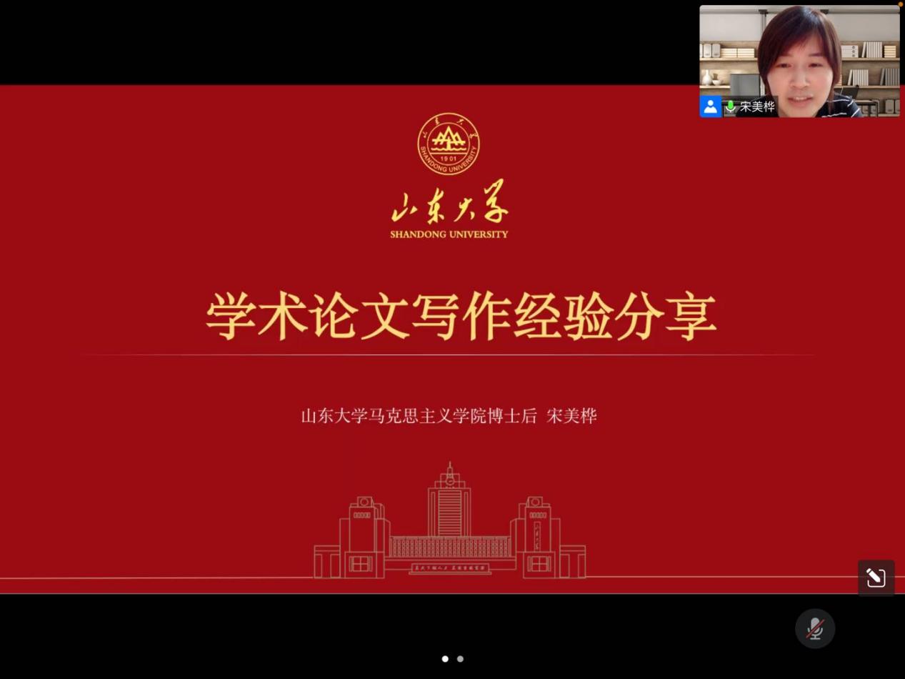 为使同学们更好地掌握论文写作方法与技巧,提高学术论文的质量和水平,7月4日下午,马克思主义中国化研究方向召开线上读书分享会。本期读书会邀请到山东大学永利y23455博士后宋美桦老师作题为“如何写一篇优秀的学术论文”的经验分享。本次读书会由班主任毕松老师主持,全体2021级马克思主义中国化方向硕士研究生参加。