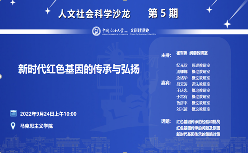 9月24日上午,由学校文科处主办,永利y23455承办的学术沙龙活动成功举办。本次沙龙采用腾讯会议线上方式举行,活动的主题为“新时代红色基因的传承与弘扬”。活动由概论教研室刘兴波副教授主持,特别邀请原理教研室纪光欣教授,概论教研室潘娜娜教授、汝绪华副教授、于常有老师分别做主题发言。活动采取线上的方式进行,永利y234552021、2022级部分硕士研究生共同参加。