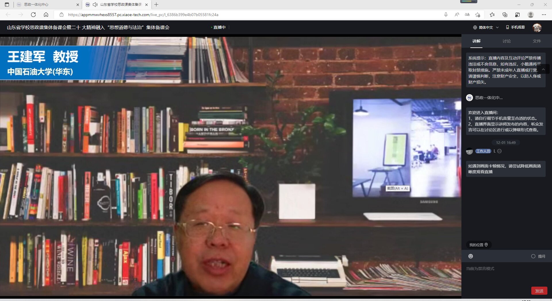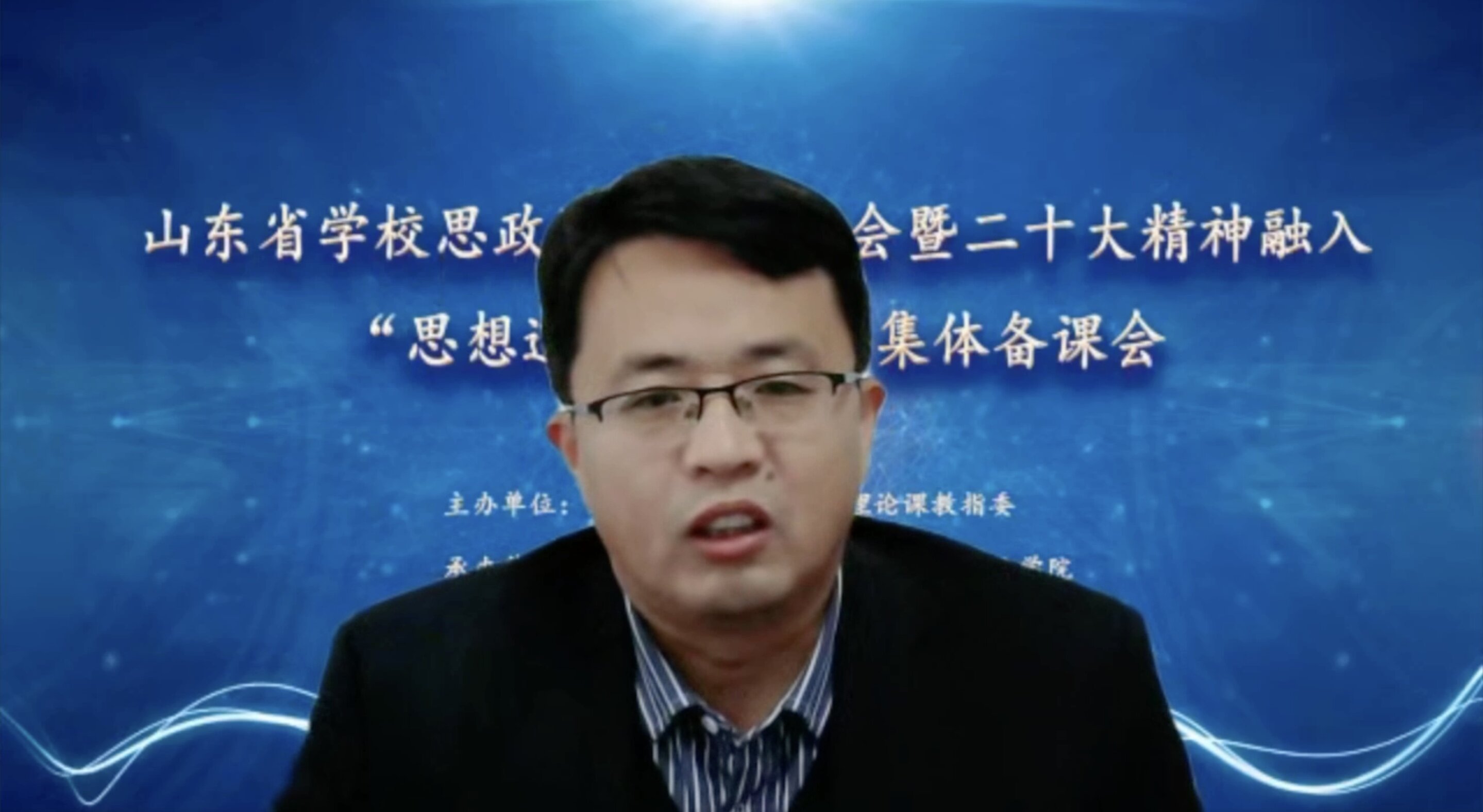 为深入推进党的二十大精神进教材、进课堂、进学生头脑,用习近平新时代中国特色社会主义思想铸魂育人,落实立德树人根本任务,提升高校思想政治理论课教学水平,助力高校思想政治理论课课程建设,12月2日,由山东省学校思想政治理论课教指委、yl23455永利集团联合主办的山东省学校思政课集体备课会暨党的二十大精神融入“思想道德与法治”集体备课会以线上的方式成功举办。中国石油大学(华东)党委副书记万云波、山东省教育厅思政处副处长仇宝艳出席会议并致辞。中国石油大学(华东)永利y23455院长张瑞涛主持会议。
