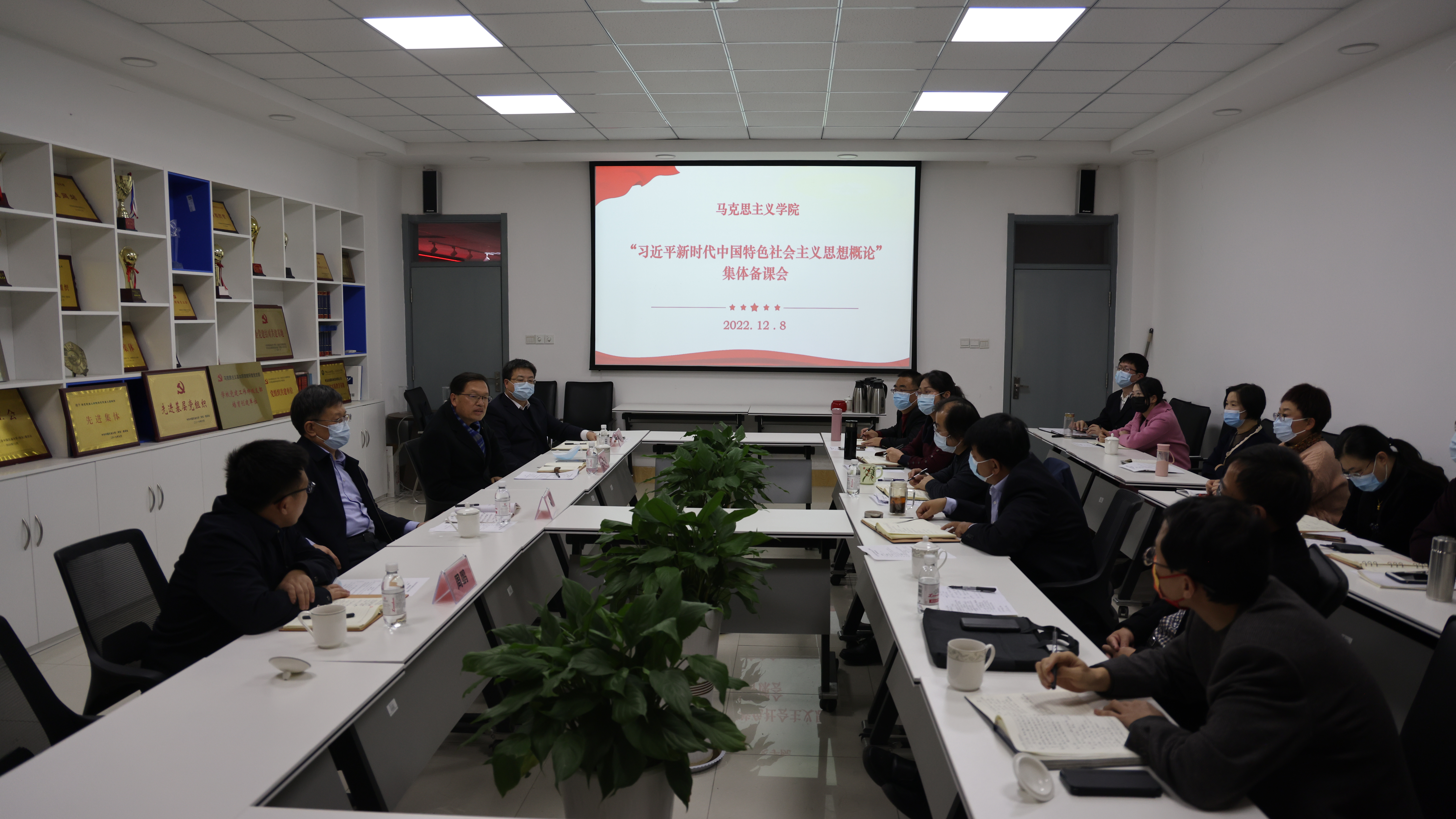 12月8日下午,“新思想”教研室在文理楼459举办党的二十大精神融入“习近平新时代中国特色社会主义思想概论”集体备课活动。学校党委书记王勇、党委副书记万云波、副校长周鹏、党委副书记马国顺等学校领导,学院领导班子成员及“新思想”教研室全体教师参加活动。备课活动由学院院长张瑞涛主持。