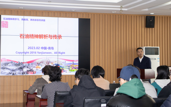 在“石油精神解析与传承”部分,闫建文对石油精神的形成与发展、石油精神长久不衰的历史根源、石油精神的时代内涵、弘扬石油精神的时代意义、弘扬石油精神的时代路径做了精彩阐释。闫建文指出,石油精神的形成与发展先后经历了萌芽、孕育、形成、发展和升华五个时期。石油工业的发展史,是一部艰苦奋斗创业史、一部民族石油工业振兴史,也是一部锐意进取创新史、一部优良传统传承史,更是一部依靠科学精神力量推动石油工业从无到有、从小到大、从强到弱并在世界石油之林崛起的历史。在“关于找工作的一点思考”部分,闫建文客观分析了当前的就业形势和毕业生择业的原则和重点,强调了读书对青年人的重要性,并与现场的同学进行互动交流。最后,闫建文鼓励同学们要多用心、勤思考,做一个博学、快乐、幸福的人。