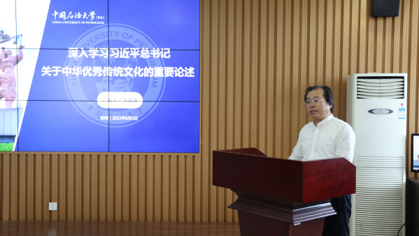 张瑞涛院长以《深入学习习近平总书记关于中华优秀传统文化的重要论述》为题,结合理论溯源与现实案例,重点阐释了中华优秀传统文化的历史定位,指出中华优秀传统文化是中华民族的“根”和“魂”、是中华民族的文化基因和精神家园、是国家文化软实力的重要支撑。根据习近平总书记在文化传承发展座谈会上的讲话,张瑞涛院长强调“结合”的前提是彼此契合、结果是互相成就,“结合”筑牢了道路根基、打开了创新空间、巩固了文化主体性,并鼓励永利y23455的师生党员应具备更高的政治站位、学术水准与道德品质。