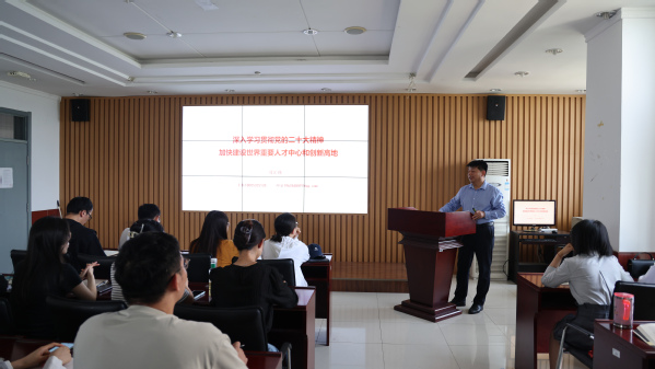 司江伟书记以《深入学习贯彻党的二十大精神,加快建设世界重要人才中心和创新高地》为题,全面讲解了党的二十大关于人才工作的新部署,并立足历史逻辑对第二次全国人才工作会议以来我国人才队伍界定的沿革、党的十八大以来关于人才的工作部署做了概念厘清和数据分析。司江伟书记指出,习近平总书记对人才工作发表的一系列重要论述,创造性地丰富和发展了中国特色社会主义人才理论体系,指导着我国深入实施新时代人才强国战略、加快建设世界重要人才中心和创新高地。