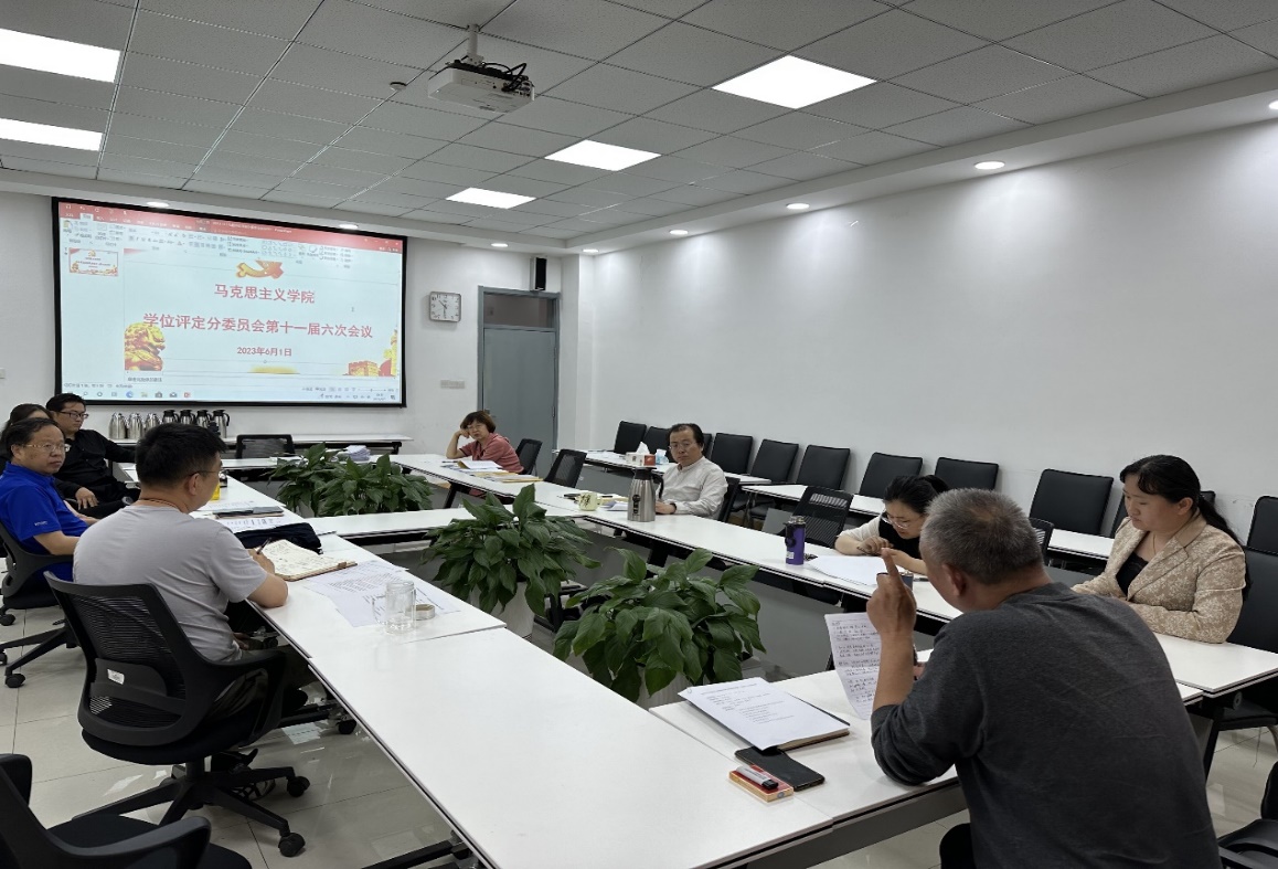 2023年6月1日上午10:00,学院第十一届学位评定分委员会第六次工作会议在文理楼459会议室举行。会议由学位评定分委员会主席张瑞涛教授主持,王建军教授、潘娜娜教授、张福运教授、薛俊清教授等8位 委员参加会议。