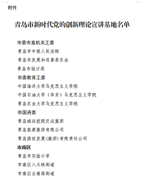 近日,中共青岛市委宣传部印发《关于调整设立青岛市新时代党的创新理论宣讲基地的通报》,我院入选青岛市新时代党的创新理论宣讲基地。