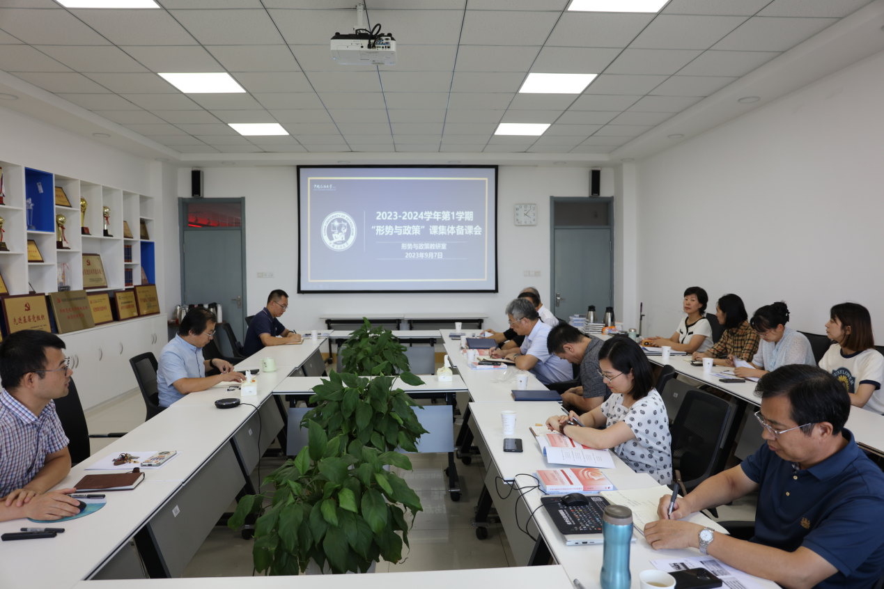 2023年9月7日下午,形势与政策教研室新学期集体备课会在文理楼459举行,全体“形势与政策”课教师参加了集体备课会。教研室主任郎帅副教授对过去一个学期的课程教学情况进行了梳理,对新学期的教学工作计划作了汇报,张瑞涛院长对相关教学问题做了强调。集体备课会主要围绕以下四项议程展开: