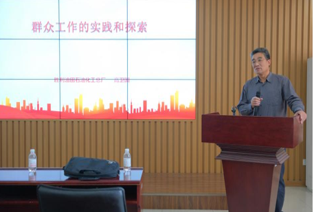 讲座伊始,高卫国从对自身工作总结、胜利油田石油化工厂的情况介绍、人生感悟、经历回顾四个方面总结了自身对于群众工作实践探索的经验。曾担任胜利油田石油化工总厂多年的党委书记,高卫国高度重视文化的作用,发展“头雁文化”、本土文化,强化安全文化、弘扬传统文化,完善激励制度,注重人文关怀,畅通沟通渠道,不断引领企业高质量发展。他勉励马院学子要秉持“路虽远行则将至,事虽难做则必成”的信念,强调机会是留给有准备的人,要以刻苦学习、知难而上、积极乐观的态度迎接美好的未来。