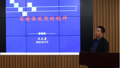 为提升我院学生文章撰写能力和宣传技巧,丰富语言积累,发挥永利y23455学科优势,为之后的学习和工作务实写作宣传能力基础。11月14日下午,在文理楼457举办第三十四期“成长沙龙”活动。本期活动邀请yl23455永利集团党委宣传部、新闻中心记者部王大勇主任为我院师生进行题为“写媒体欢迎的稿件”的专题培训,学院党委副书记、副院长袁爱军,团委书记王会,学院办公室老师及研一、研二同学共同参加。