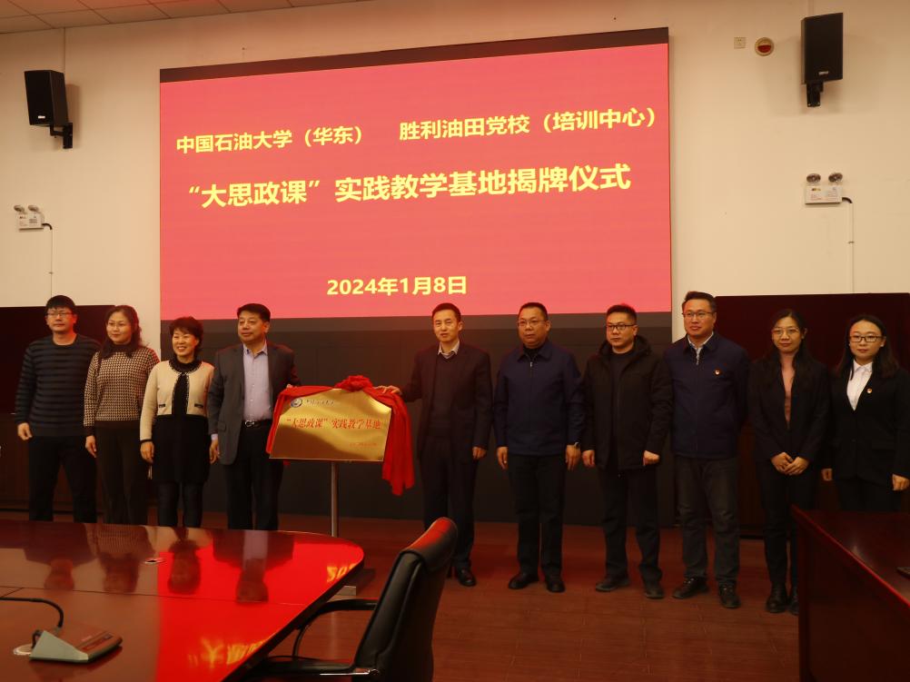 1月8日,学院与胜利油田功勋井结对共建“大思政课”实践教学基地揭牌仪式在胜利油田党校笃行楼举行。永利y23455党委书记司江伟、胜利油田党校副校长、培训中心经理、党委副书记郑玉奇为基地揭牌,永利y23455副院长宋海儆、党委副书记、副院长袁爱军和部分教师学生代表参加了揭牌仪式。