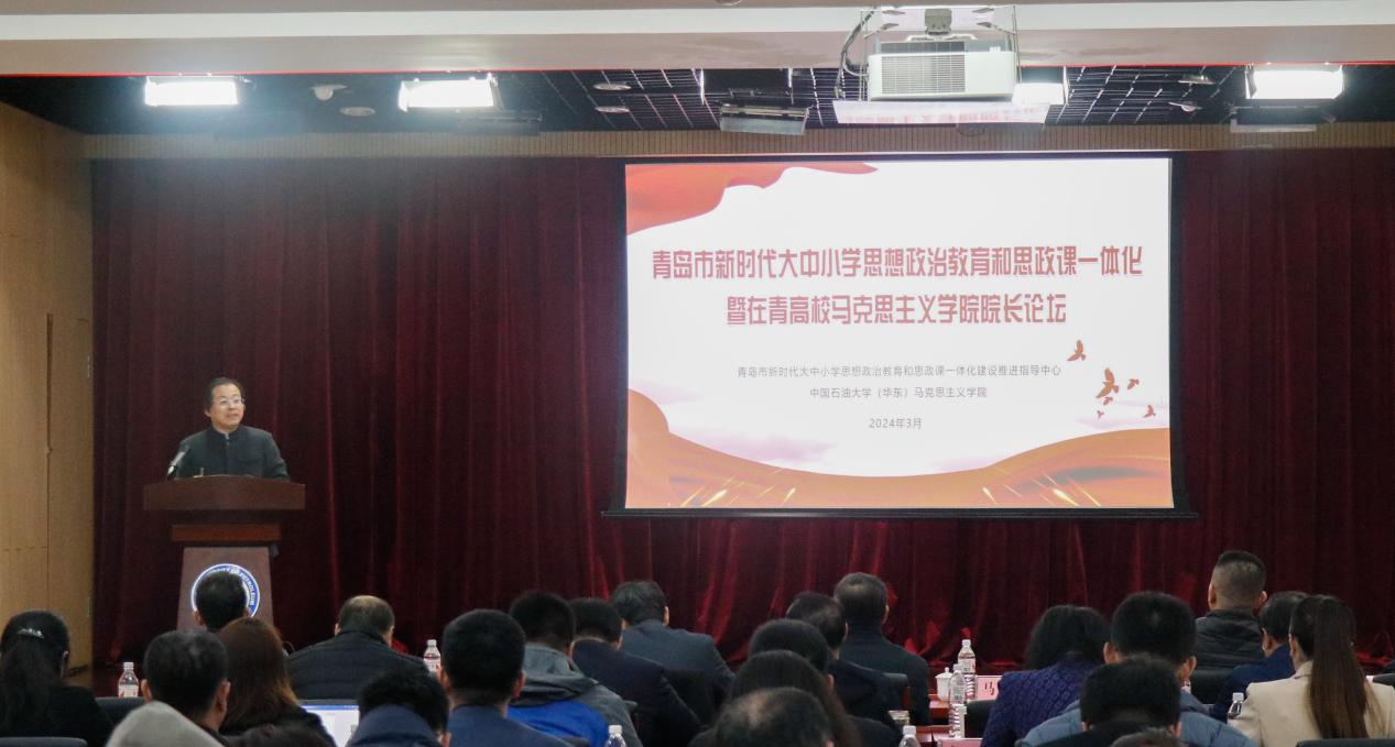 3月23日,青岛市新时代大中小学思想政治教育和思政课一体化暨在青高校永利y23455院长论坛在yl23455永利集团唐岛湾校区逸夫报告厅隆重举行。学校党委副书记马国顺、青岛市教育局总督学李晓元出席开幕式并讲话,共同为“青岛市新时代大中小学思想政治教育和思政课一体化建设推进指导中心”(以下简称“指导中心”)揭牌。揭牌仪式由学院党委书记司江伟主持,“指导中心”领导成员,以及全市各大中小学思政课一体化建设共同体单位负责人、高校永利y23455院长等200余名师生参加仪式。