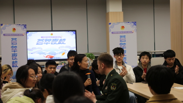 在现场互动环节,同学们针对学习、生活和有关参军的问题积极提问。“面对艰苦的新兵军训如何坚持下来”、“军营中的温馨时刻”、“参军后思想上的转变”等等,同学们争相发言。克拉尼·夏拉别克则用一个个小故事耐心为同学们解答,鲜活的事例引来现场惊叹阵阵,气氛十分轻松活跃。最后授课教师王青进行了总结,鼓励大家面对学习和生活中的困难,要坚定理想信念,不怕吃苦、敢于吃苦,在攻坚克难中淬炼自己的意志品质,不断追求更好的自己。