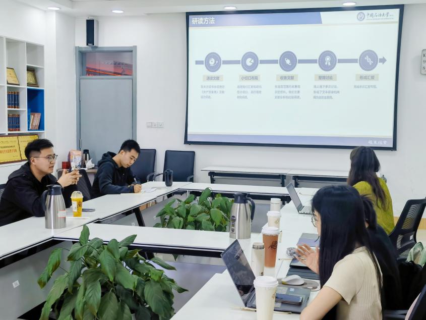 读书会第一阶段,王俊、聂海莹、刘思远三位同学为第一小组,围绕“阶级斗争 ——《共产党宣言》对科学社会主义实现路径的回答”进行PPT展示汇报,从研究方法、实现路径、拓展研究等方面对《宣言》中的阶级斗争理论进行了详细阐述。随后,第二小组苏丽莎、高天甜、孙新元、李若琴四位同学以“科学社会主义的基本原则有哪些——基于《共产党宣言》文本分析”为主题,总结了六点科学社会主义基本原则,并结合《宣言》原文文本展开论述了自己的见解。