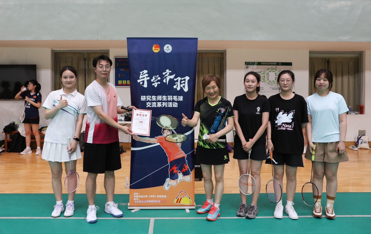 6月28日下午六点由马院工会和团委联合举办的师生羽毛球比赛在石油大学羽毛球馆圆满落下帷幕。这是学校研究生会主导的“导学齐羽 研究生师生羽毛球交流系列活动”之一。比赛采取导师领队多人参与抽签的七羽伦比赛制。四个队伍分别由岳金霞、叶立国、刘继高、牛继玲老师带队。经过三轮激烈比赛,最后由牛继玲老师率领的队伍夺得冠军。赛后,师生们席地而坐,又进行了友好的全方位交流。
