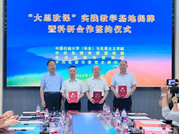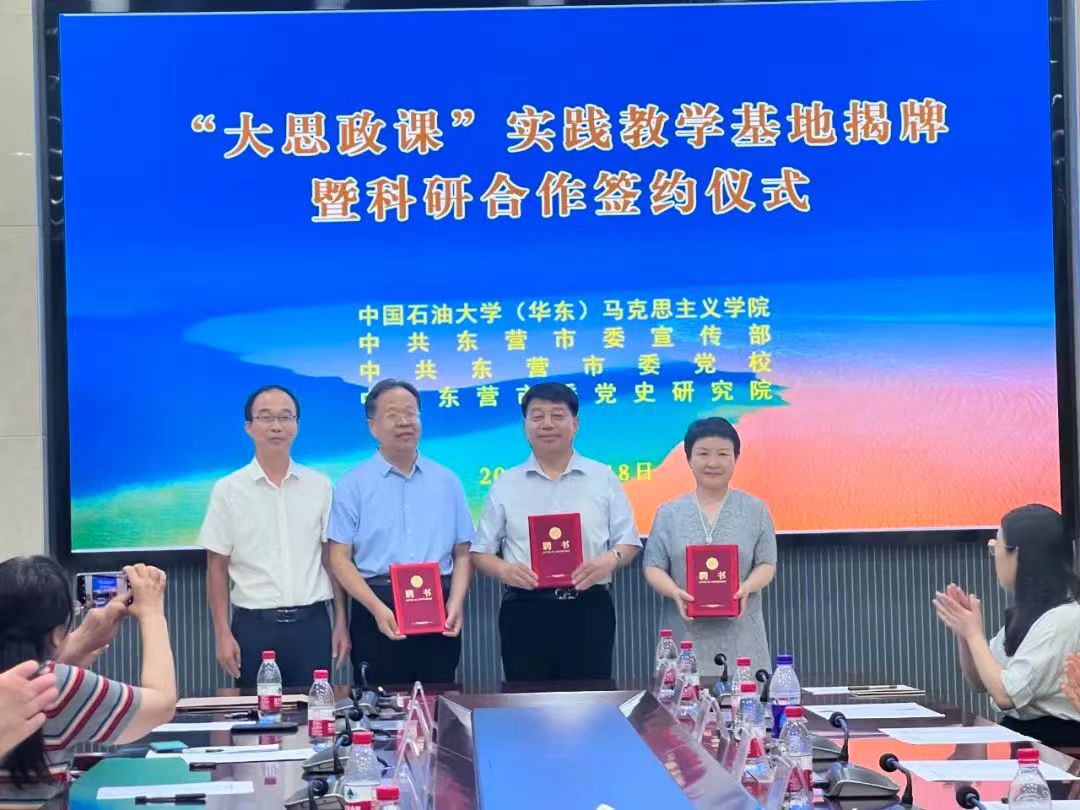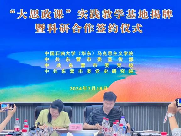 为深入贯彻习近平总书记关于“大思政课”建设的重要指示精神,7月18日,我院携手中共东营市委宣传部、东营市委党校、东营市委党史研究院,在黄河文化馆举行“大思政课”实践教学基地揭牌仪式暨科研合作协议签订仪式。