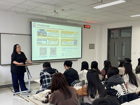 讲座预热环节,窦雅琴老师以“为何升学读研”、“何时决定保研或考研”以及“本科生和研究生角色差异”三个关键问题为切入,与在座学生进行互动讨论,深入了解大家的想法与需求。窦老师以建构主义中经典的“鱼牛寓言”故事为引例,引导同学们认识到学业就业等重要信息、目标成就实现与自身的主动探索与努力密不可分。在谈及职业生涯选择时,她通过兴趣、能力、价值观三者构建的“交叉圆圈”向大家展示就业选择的依据,并提出希望大家关注祖国、社会与行业的需求,将个人职业发展与社会需要相结合。临近尾声,窦雅琴老师以“步步为营才能步步为赢”为寄语,勉励在座学生珍惜当下、扎实积累,在人生的职业旅程中取得丰硕成果。