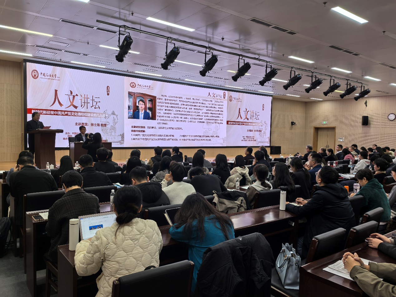 11月24日,山东大学永利y23455、马克思主义研究院院长张士海教授做客学校第29期“石大人文讲坛”,作题为“新时代新征程中国共产党文化领导权建设几点思考”的学术讲座。讲坛由文科建设处主办,永利y23455承办,永利y23455院长张瑞涛主持。