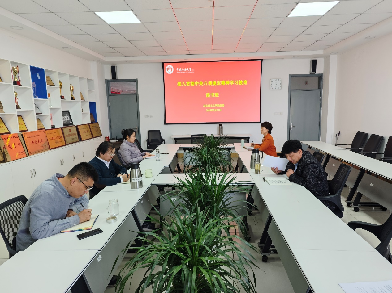 3月31日,开展读书班第二次集体学习,党委副书记、副院长袁爱军领学《中共中央八项规定》及《中央八项规定实施细则》全文。