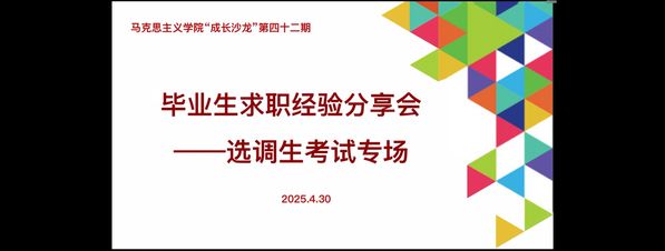 为帮助学生科学规划选调生备考路径,深入了解选调岗位职责,4月30日上午,学院通过腾讯会议平台成功举办第四十二期“成长沙龙”系列活动——毕业生求职经验分享会之选调生考试专场。本次活动特邀2022级硕士研究生梁芳、李天琦担任主讲人,由王会老师主持,2023级、2024级全体硕士研究生积极参与。