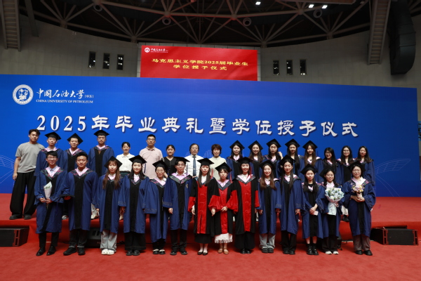 仪式进入尾声,全体毕业生以及学院领导、老师上台合影留念,永利y234552025年学位授予仪式圆满落下帷幕。唐岛湾畔的骊歌悄然奏响,马院学子的征程正待启航,2025届毕业生将秉持“石大人”“马院人”的理想与担当,如璀璨星火般闪耀祖国各地,以青春姿态续写属于他们的赤子华章。