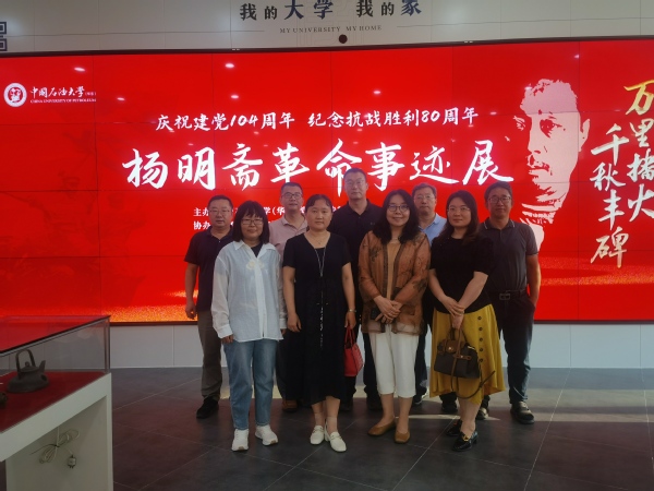 为庆祝中国共产党成立104周年,追寻红色记忆,传承革命精神,厚植爱国情怀,7月4日,学院以教研室(党支部)为单位组织师生前往校史馆开展参观杨明斋革命事迹展主题教育活动。