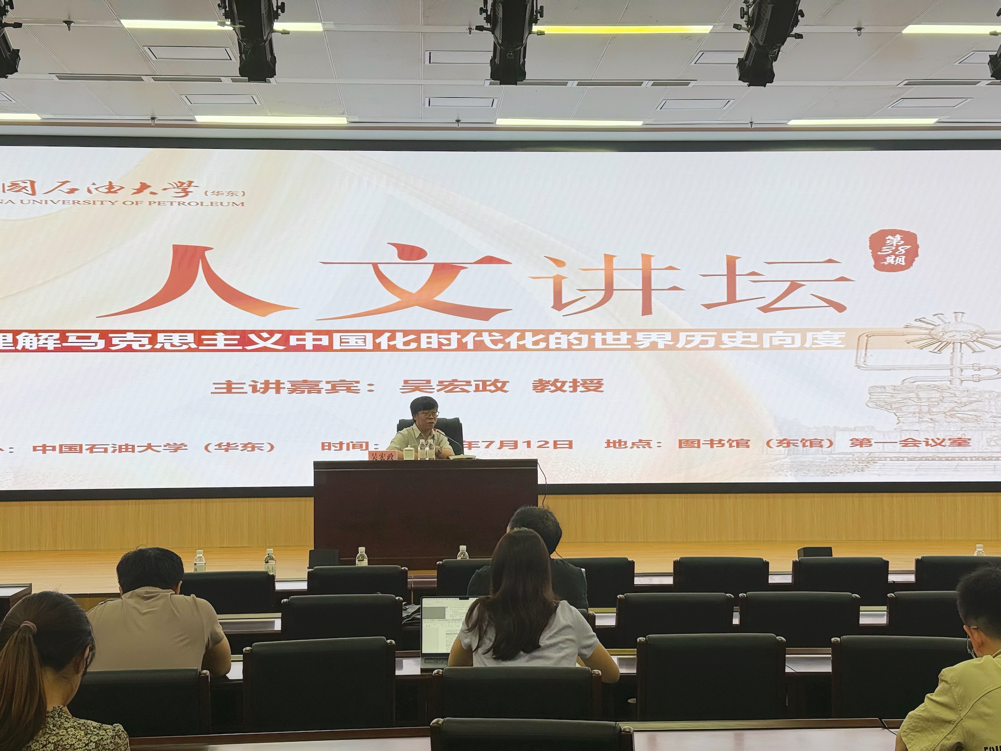 7月12日,吉林大学永利y23455院长、博士生导师吴宏政教授应邀做客第38期石大人文讲坛,为广大师生作了一场以“理解马克思主义中国化时代化的世界历史向度”为主题的学术报告。讲坛由文科建设处主办,永利y23455承办,永利y23455院长张瑞涛主持。
