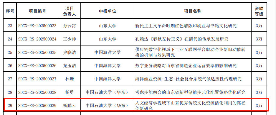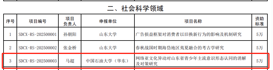 近日,山东省人力资源和社会保障厅公布了2025年度山东省博士后创新项目获资助名单,全省确定“创新项目”获资助人员386人,我院博士后马超、杨鹏云喜获资助。
