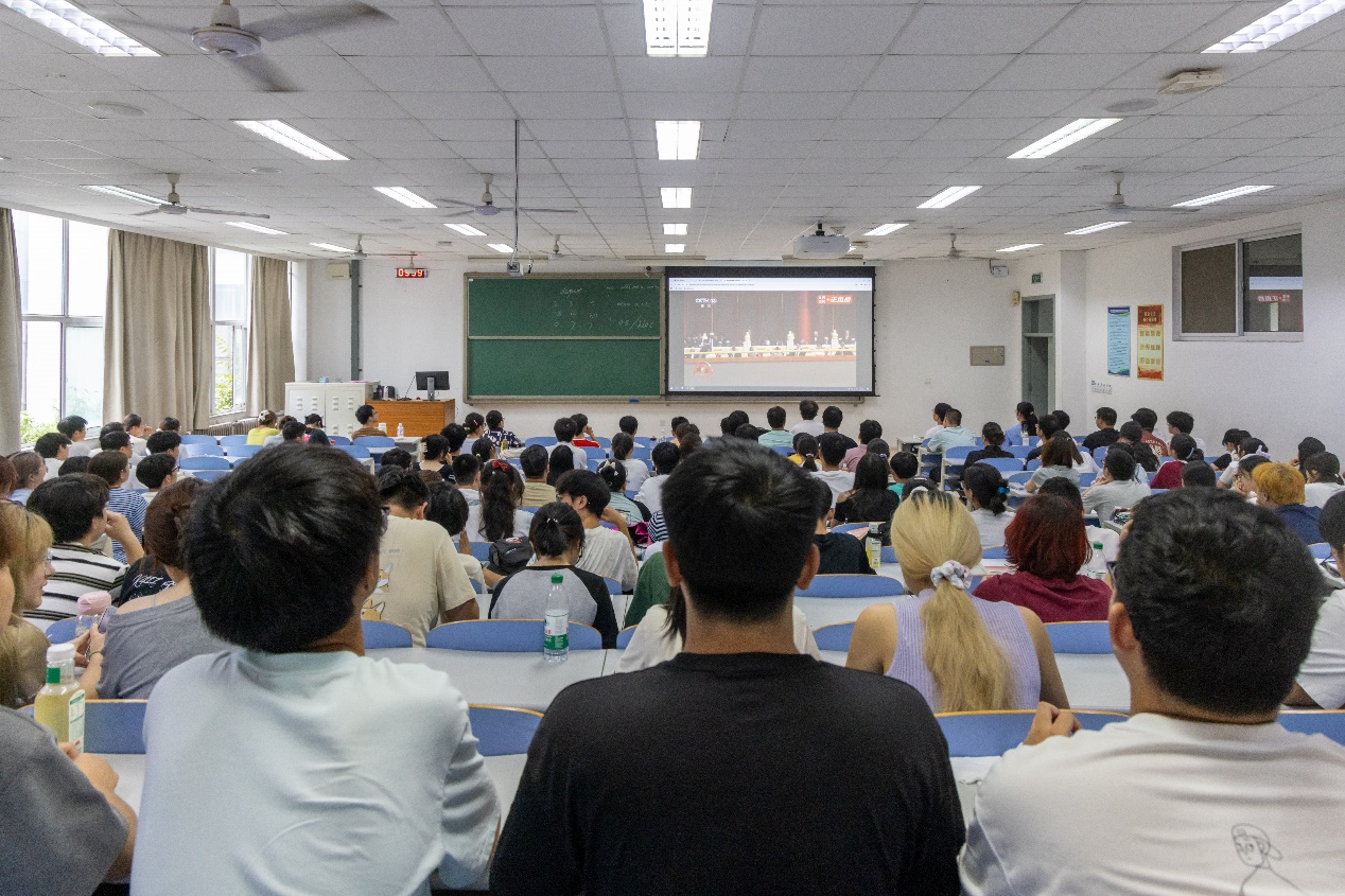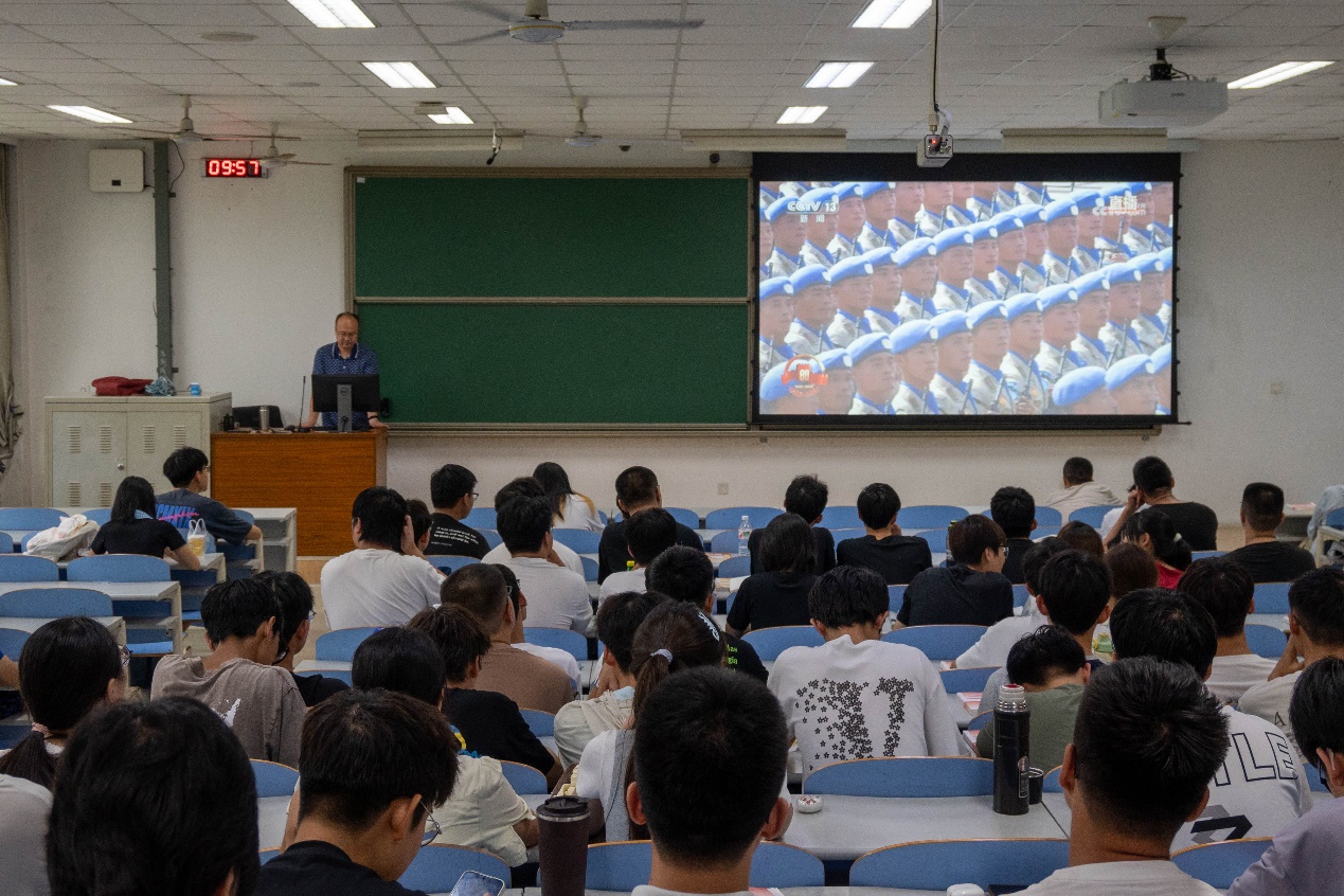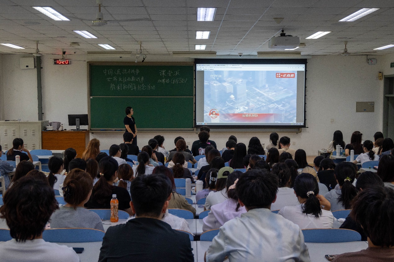 9月3日上午,纪念中国人民抗日战争暨世界反法西斯战争胜利80周年大会在北京天安门广场隆重举行。值此重大历史时刻,永利y23455积极响应、创新作为,将大会实况有机融入思政课堂教学,以同上一堂“云端”大思政课的形式,组织1300余名师生同步收看大会直播,认真聆听习近平总书记发表的重要讲话,并观看阅兵式。