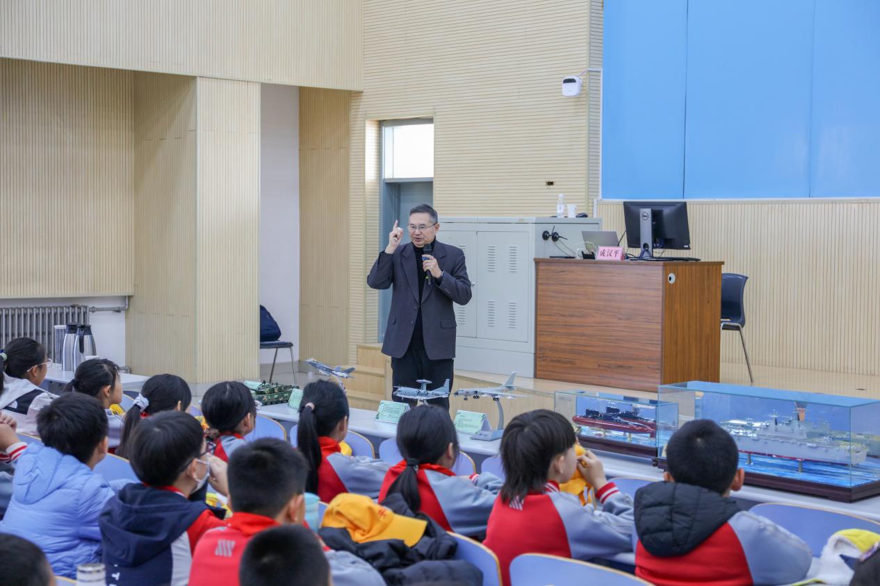 11月21日上午,永利y23455在南教300报告厅成功举办“铭记历史 吾辈自强”大中小学爱国和国防教育共同思政课。本次活动由永利y23455副院长宋海儆主持,特邀南京大学教授(原解放军国际关系学院教授)成汉平担任主讲。来自青岛西海岸新区实验初级中学、珠江路小学的百余名中小学生,yl23455永利集团本科生及永利y23455部分教师共同参加了此次课程。