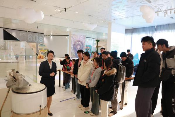 从上世纪80年代的黑白电视机、笨重的双门冰箱到现在能够定制个性化方案的“需求宝”系统、联动全屋的智能家电,讲解员详细讲述着海尔从代工小厂到全球家电巨头的蜕变。“80年代靠质量站稳脚跟,90年代靠创新拓展市场,21世纪靠科技领跑全球,这正是中国制造业升级的缩影。”永利y23455副院长于泳表示:“课堂上讲的‘产业升级’‘科技赋能’,在这里变成了可体验的生活场景,这种实践补充,让学生对国家发展的理解更深刻。正是中国制造业坚持高水平科技自立自强的信心和决心,彰显了中国企业的发展韧性与创新活力。”