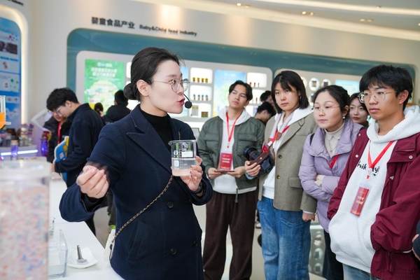 “没想到常见的海藻能有这么多创新应用,更没想到这背后是企业持续攻关的坚持,是对生态保护的担当。”海空学院刘奕铭同学在海藻提取物展区仔细观察,不时与同伴交流。讲解员介绍,企业通过持续技术攻关,实现了海藻资源的全产业链利用,既保护了海洋生态,又培育了新兴产业,这种绿色转型的发展路径,正是西海岸新区高质量发展的核心内涵。同学们在互动体验区亲手体验海藻制品制作,在实践中体会科技创新与绿色发展的深度融合。