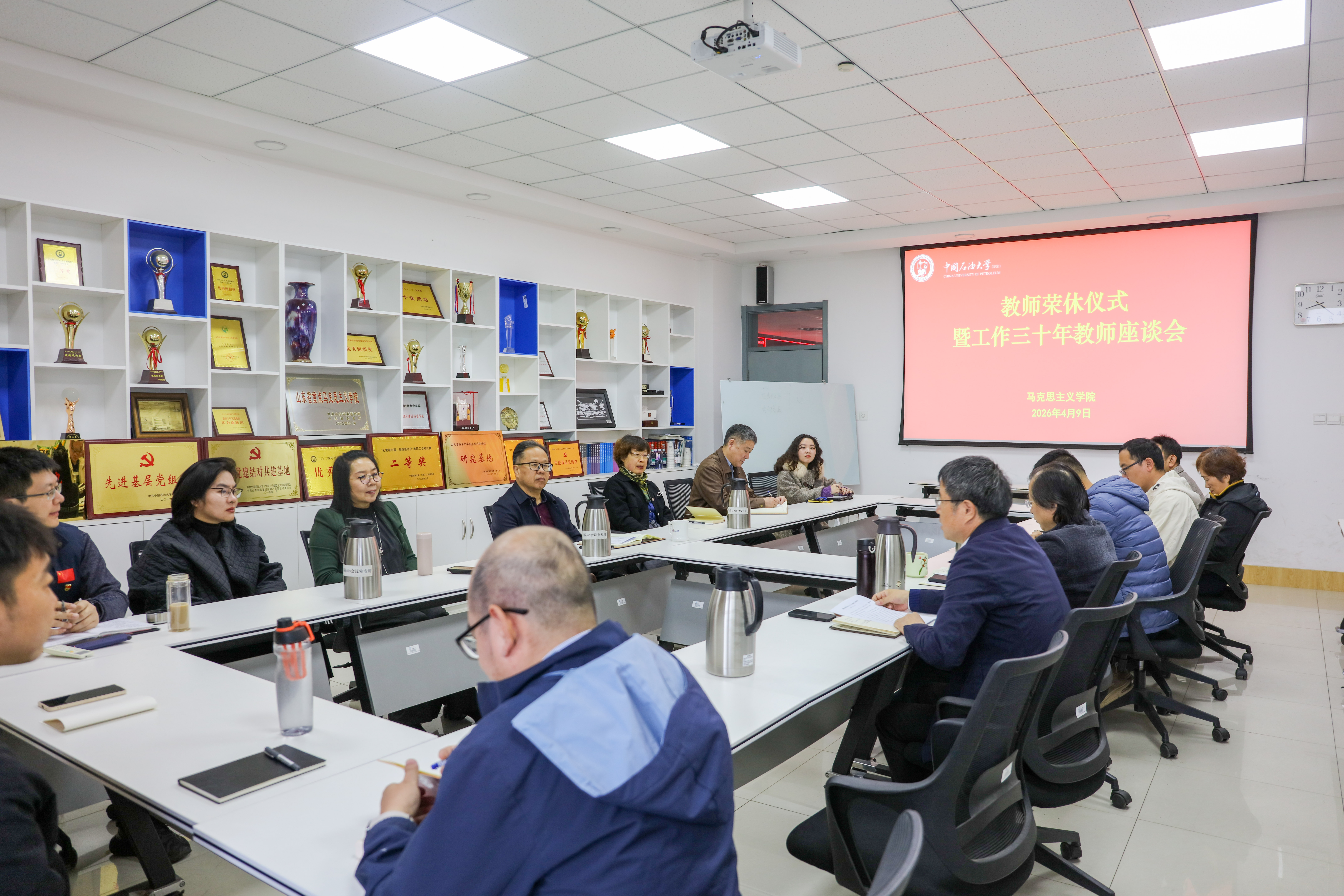 为向荣休教师和工作三十年的教师表达致敬与感谢,对优良师德进行弘扬与传承,把精神财富做好传递与接力。4月9日上午,学院在文理楼459会议室举行教师荣休仪式暨工作三十年教师座谈会。荣休教师、工作三十年教师、学院领导班子成员、工会主席、教研室主任、办公室有关人员、年轻教师代表参加活动,党委书记姚成郡主持。